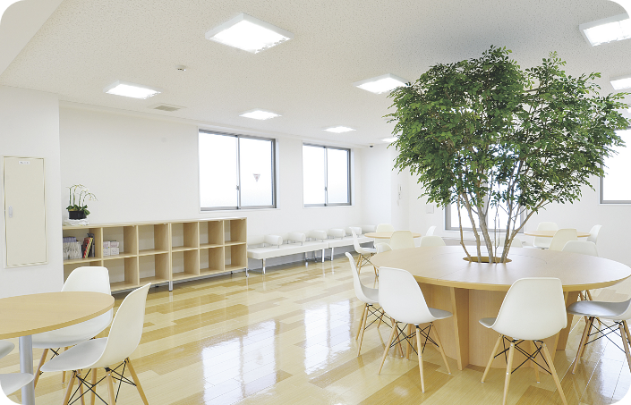 木目基調の待合室でゆったりカフェ気分