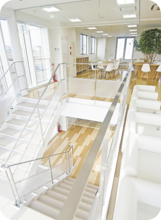 吹き抜けの室内には外光が溢れています